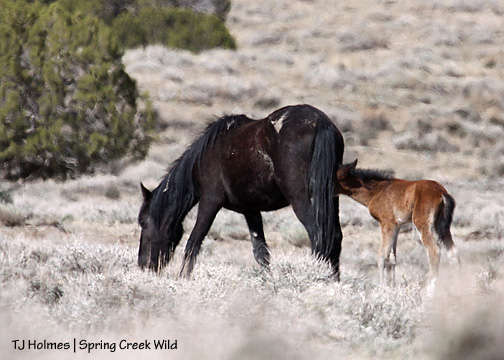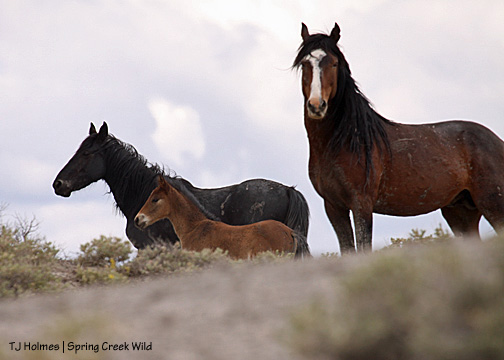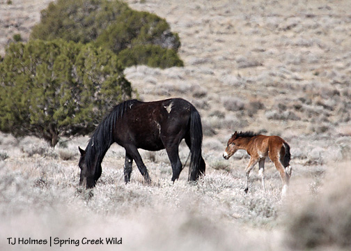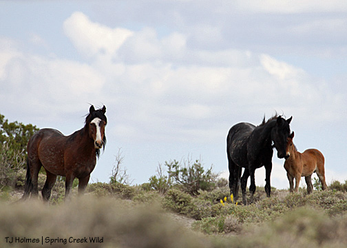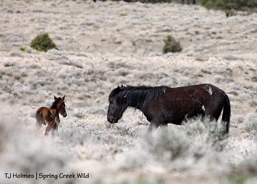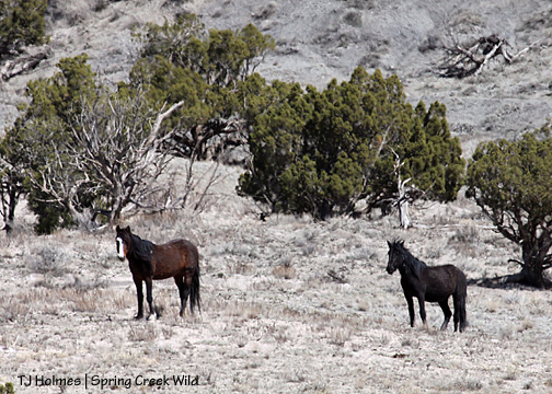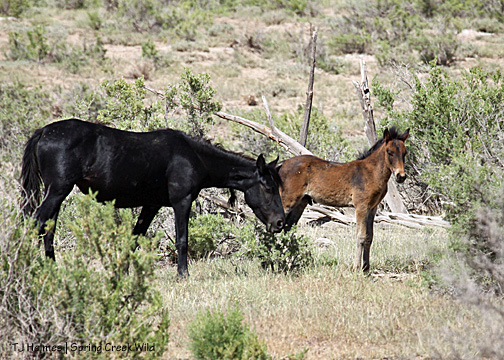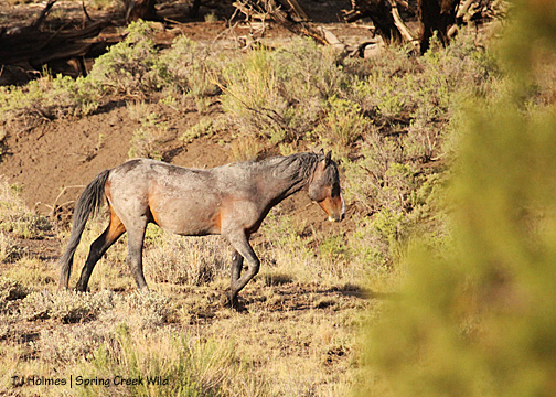 We got up to within hailing distance of the ponies, and Ty, then Mesa finally saw us as they trailed after the band, slowing grazing along the base of “their” hill (really, aren’t all the hills theirs?!). Mesa came out between us and the band, not alarmed, and Corazon, before he knew what Mesa was looking at, came out to meet him.