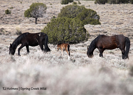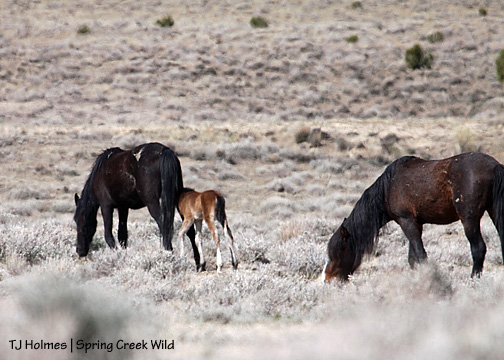 Kiowa finally saw us – Maiku took advantage of her pause to grab a snack. Copper in the foreground, Chipeta behind Kiowa and Spook at right.