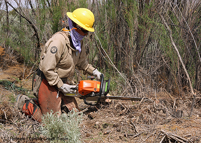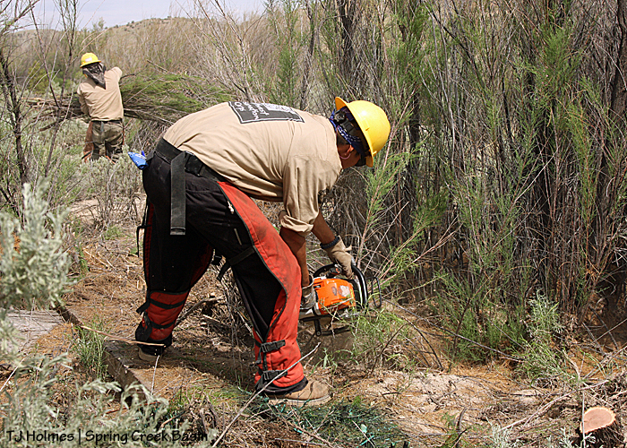 And one more project to finish off the whole deal: Dustin, Chase and Tom installed a “dead person.” Back story: Most fence-building crews call these a “dead man” – “dead men”? But being the modern folks we are, and not to exclude an entire gender, in the last couple of years, with fence-building guru Tom Kelly – recently retired from the Forest Service – we started calling them “dead persons.” We’re innovative like that. This old tree trunk fit the bill perfectly; it will block the gap below the wire, and it will swing with any seasonal flows that wash through the arroyo.