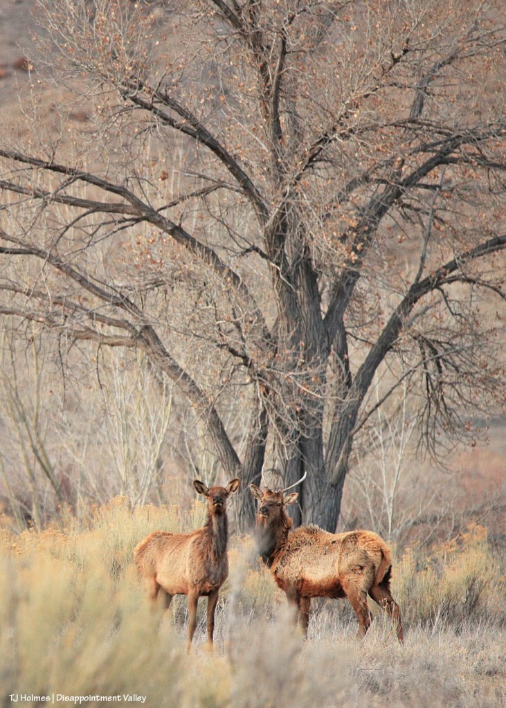 Sunrise in Disappointment Valley highlighting mule deer (I’m so glad to see the bucks back!) in the greasewood and chamisa (rabbitbrush) and willows and cottonwoods along Disappointment Creek, looking toward Spring Creek Basin. It was a drive-by shot, and I couldn’t actually see what I was shooting on my phone’s screen, but the light was so beautiful highlighting the pretty and handsome does and bucks, I literally pointed and pressed the button.