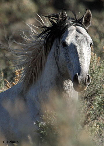 Wednesday’s weather was quite a bit different than Tuesday’s: Somewhat cloudy, windy, cooler. Grey skies greeted us as we drove east with the idea to drive into the basin to look for mustangs to show the students. We saw Ty’s band at a distance from the road. By the time we got to Road K20E, we decided that the grey we were seeing was dust, not rain, so in we went. Chrome’s band delighted us by being a little closer to view!