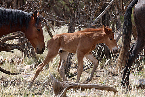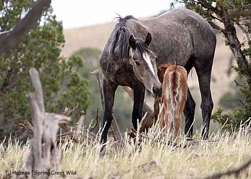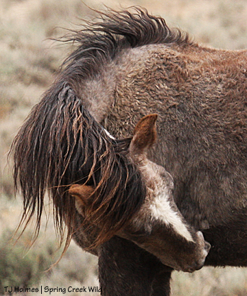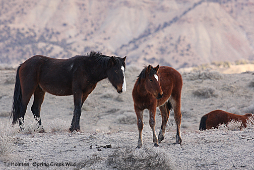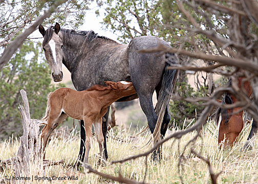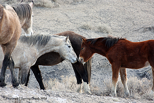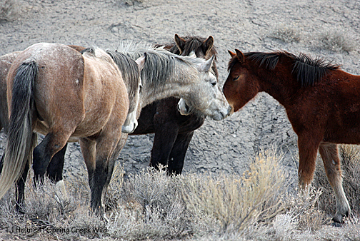 Luna’s oldest daughter that I know – Kestrel – I met as a weanling after the last roundup. Starting with Ember, I’ve met her foals within days of their births. Luna is remarkable and has much to do with teaching me (as well as her babies) the ways of the herd and of the basin.
