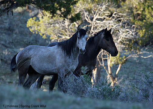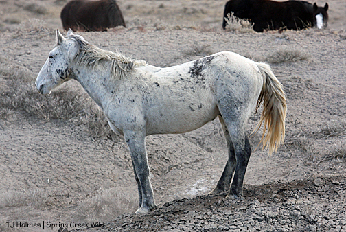 Cuatro watching after his bachelor pals, a new generation of bachelors now that many of our bachelors have found mares. By pushing back the frequency of roundups by using PZP, I hope to see a clearer, more settled pattern of band dynamics emerge without the interruption of devastating roundups. We have several small bands now; I’ve heard people say there used to be just a few bands, but the were much larger (more horses). I wish I knew then the number of bachelors floating around. Most bands now have at least one foal, but only one band has two foals.
