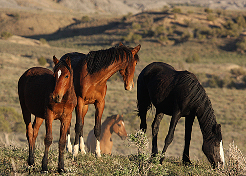 Fierro, Hannah and Sable. Hollywood actually stole Hannah briefly when she was a yearling (by briefly, I mean around an hour or so). That was shortly before she followed sister Ember and half-brother Pinon to Hook’s band … followed shortly thereafter by Sable.