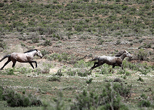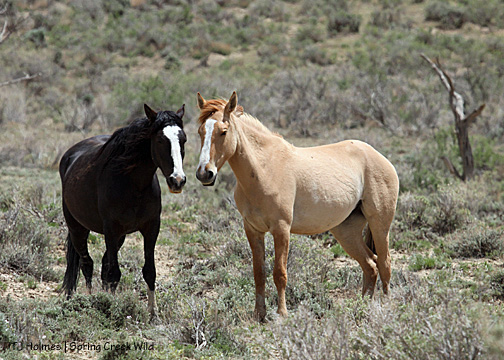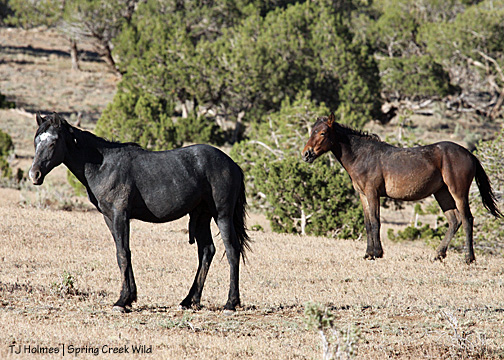 Hannah and Sable. When I saw Mahogany – without Sable – I hoped fervently that she had joined her yearmate and big brother Pinon older half-sister Ember with Hook. This kind of thing makes me wonder how “off” our herd dynamic is with massive roundups that take most of the horses every two to four years. Hannah and Sable are yearlings. In a normal environment, I don’t think they’d have left their dams this soon. In both cases, they left before their mothers had even had this year’s foals.