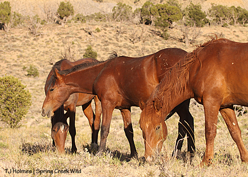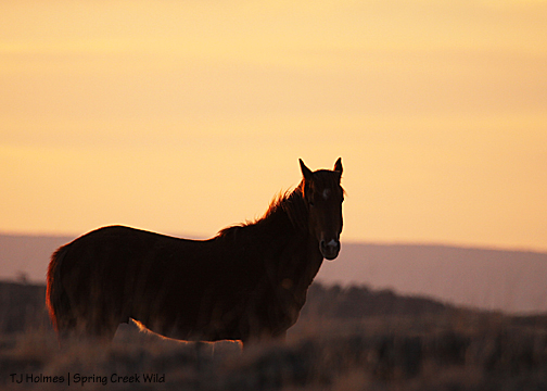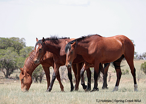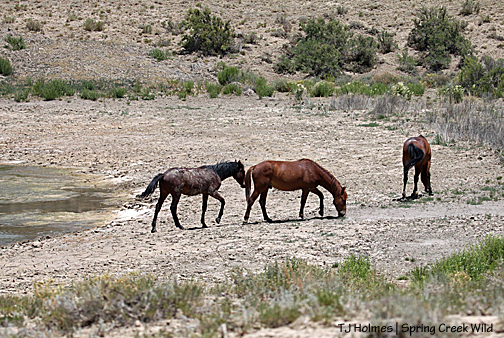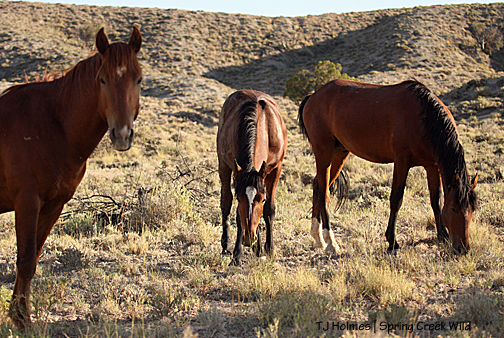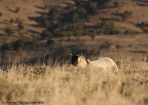 And it was about then that I looked west and saw Hollywood’s band. He was standing, napping; Shane was lying down. Piedra was standing a short distance away … and there were ears at her feet. Oh!