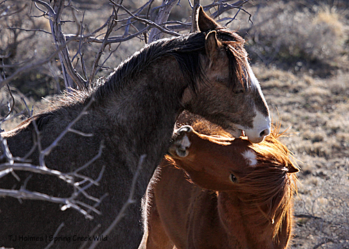 While visiting Grey/Traveler’s band, I was watching him watch his younger girls, Corona, Gaia and Aurora, when he suddenly came alert. Chrome’s band had just appeared over the crest of the hill.