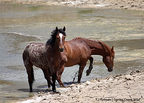 Apollo gets ready to walk out of the pond while Hayden tests the splashability. I’m taking this from my Jeep up on the road. This is the Sorrel Flats pond back in the eastern part of the basin.