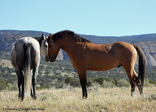 This was toward the end of the visit, but that’s Comanche at left, Hollywood closest and Piedra at right. Kestrel was to the left, Seven’s band were to the right, and Juniper was wandering between them all.