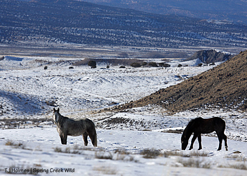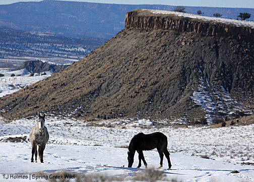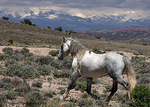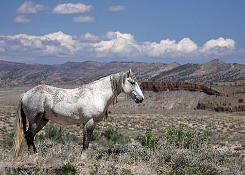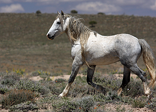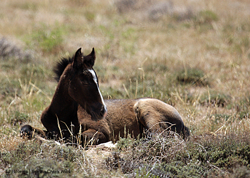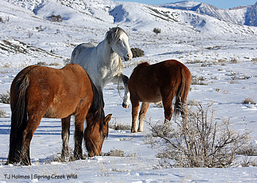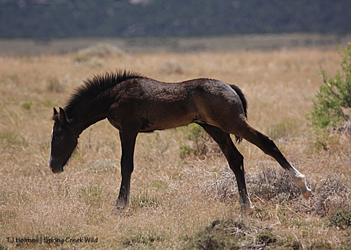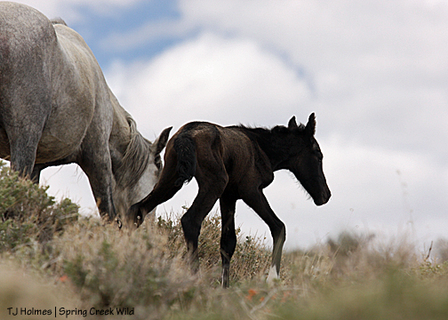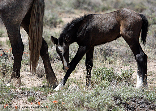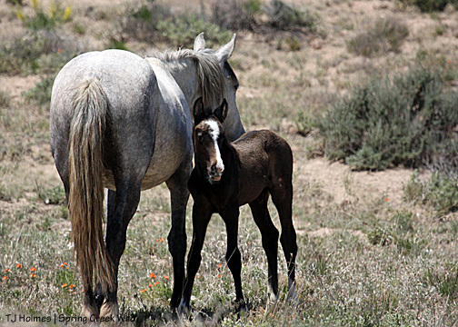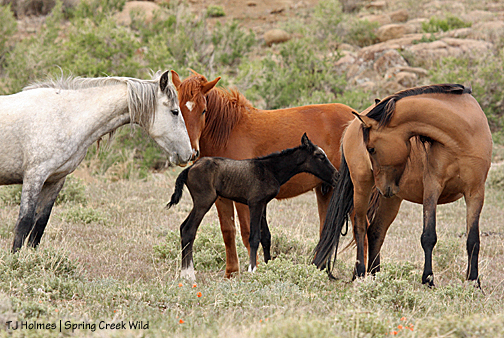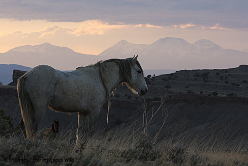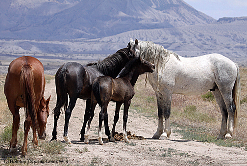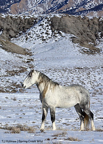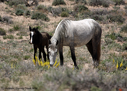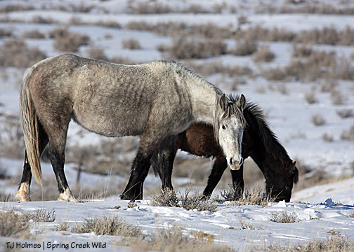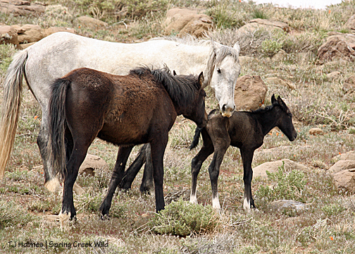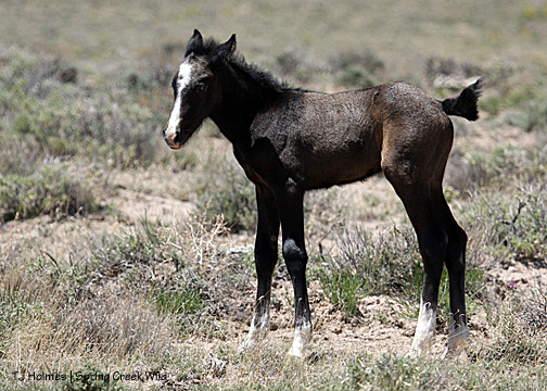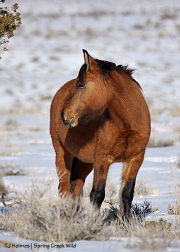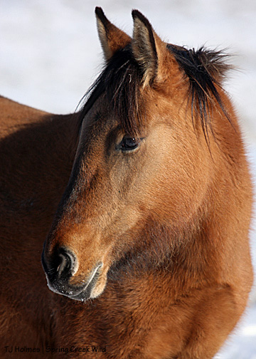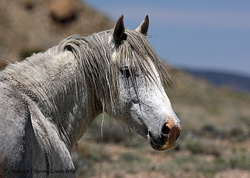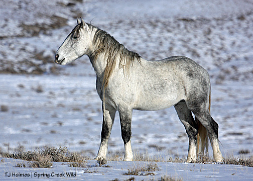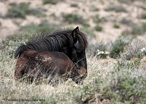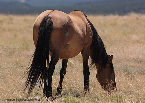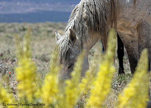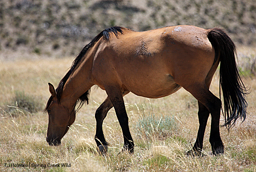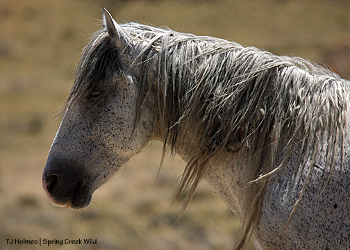 Jif was one of the first horses I documented the day I started documenting the mustangs of Spring Creek Basin. She was with Hollywood. So I never knew her as anything but one of the herd. She was not rounded up in 2007. Grey/Traveler stole her in the spring of 2008 (out from under the noses of Hollywood, Steeldust, the two young stallions in his band (Butch and Sundance) and the Bachelor 7, who were all basically attached to Steeldust’s band at that time). In the fall of 2009, she was stolen by or went with Chrome, who had been dogging Traveler’s band since that summer. She was still part of his band during the roundup.