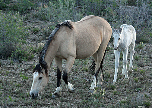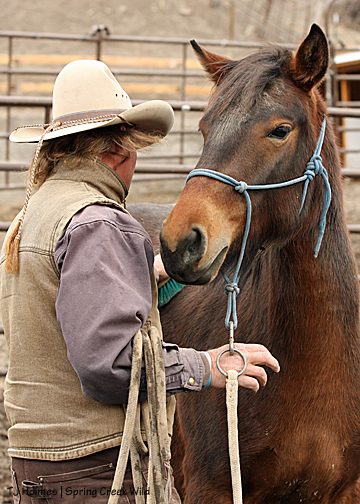 Three on Earth Day (hence her name). Cinch ought to breed her for her first foal as a 4-year-old. That’s pretty good. We’ll have a couple of 2-year-olds foal this year (Hannah and, probably, Sable) – not so good – and one 4-year-old (Baylee) still doesn’t look pregnant. Another 4-year-old (and orphan), Shadow, will have her second foal this year – she’s due within a week, which should make her the first this year. I saw them (her and David and Wind) last week but not close – other horses and the hunt for Spring kept drawing my attention.