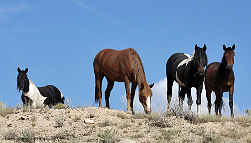 The sun was high, but the shine was warm for about the first time this spring, so I sat with them for quite a while. I thought Cinch might lead them off, but they just moseyed around grazing and stayed fairly near. I leaned back like I was on the beach and soaked in the rays, the warmth, the horses, the magic. By the time I walked quietly away, they never even looked up. 🙂