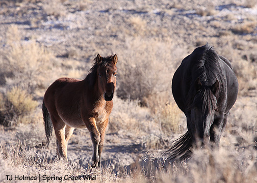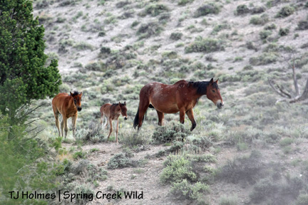 Two Boots and baby Rio in the shade of Filly Peak. Driving up, I almost didn’t see them because of the glare. Chrome didn’t move too much – he’s a fair distance to the left.