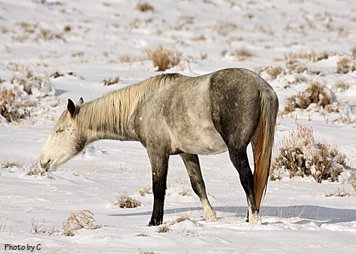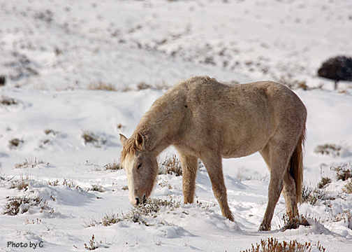 What a super visit to kick off the new year! It was a visit of some firsts: first visit of the year, first visit ever to see wild horses … I had a special visitor today! We had tried a couple of times last year to get out to see the horses but were stymied by bad weather each time. Today proved worth waiting for with bright sunshine, pristine snow and freezing conditions perfect enough to drive right in!