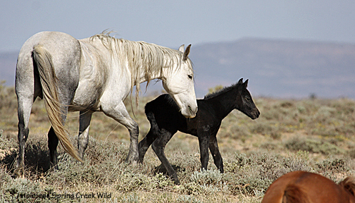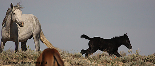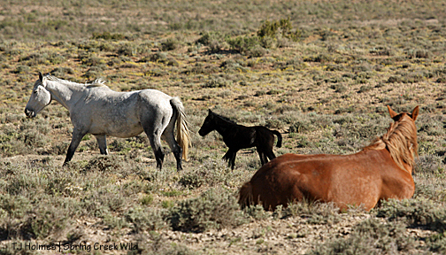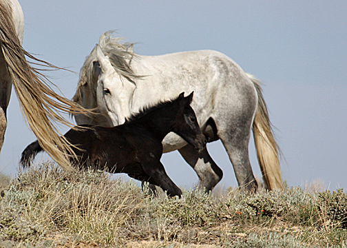 She is the spitting image of her big sister Aurora and their daddy, Bounce – except! Maia has two hind pasterns to ‘Rora’s and Bounce’s right hind pastern! I still don’t know whether Aurora will eventually turn grey like mama or stay black like daddy. Sable was jet black until her second summer, when she started to turn grey, and I first documented Ty as black – and look at him now!