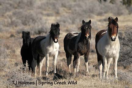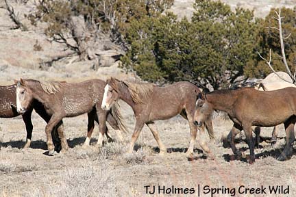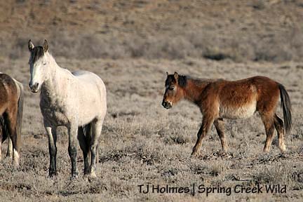 Don’t worry too much about Seven, though; he stole Kreacher’s mares, Roja (sorrel) and Molly (muley bay). I did not see Kreacher either of the two days I was out there, but I wonder if his loss of mares has anything to do with Slate missing from Bounce’s family (he still has his young grey mare, Alegre).