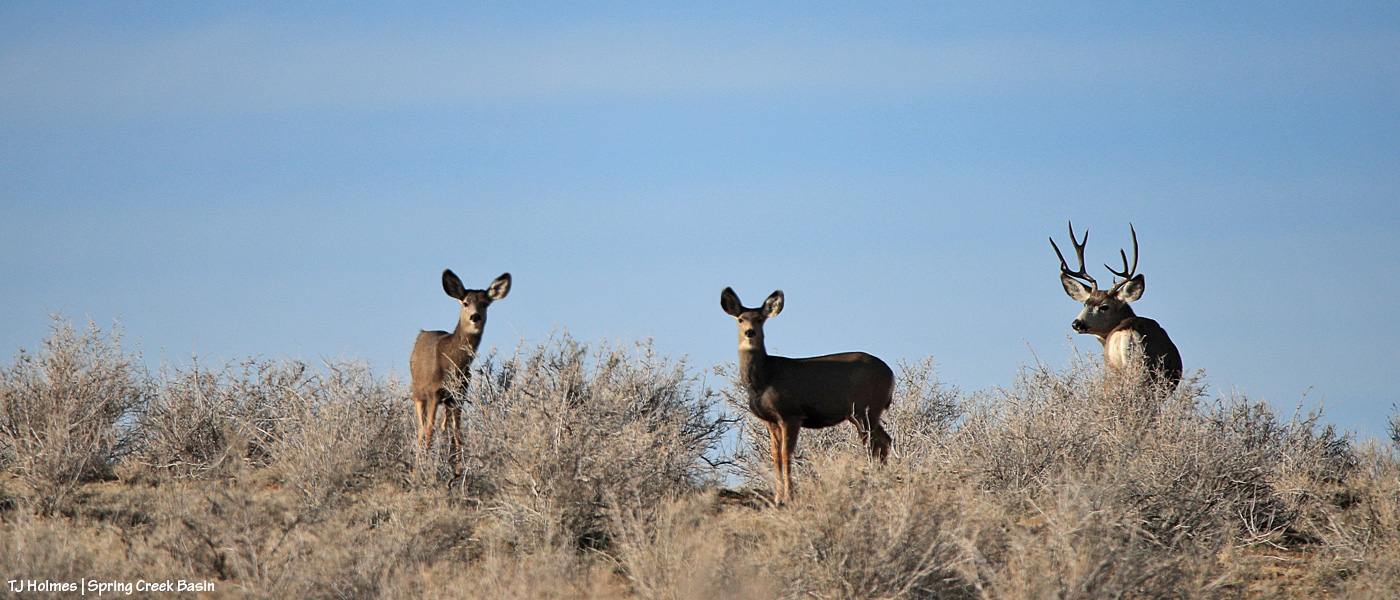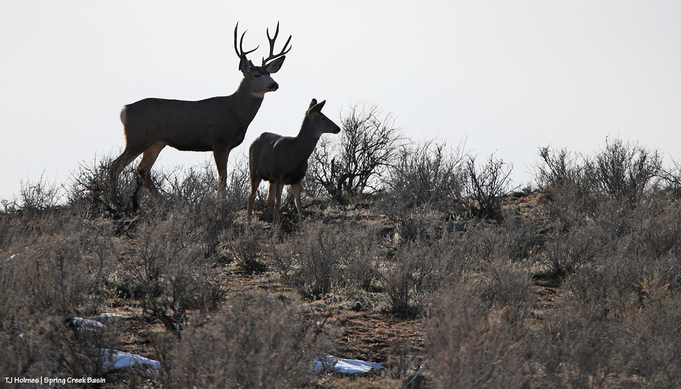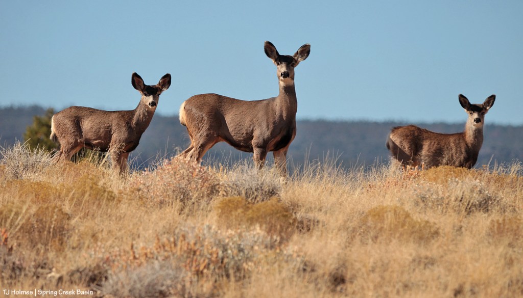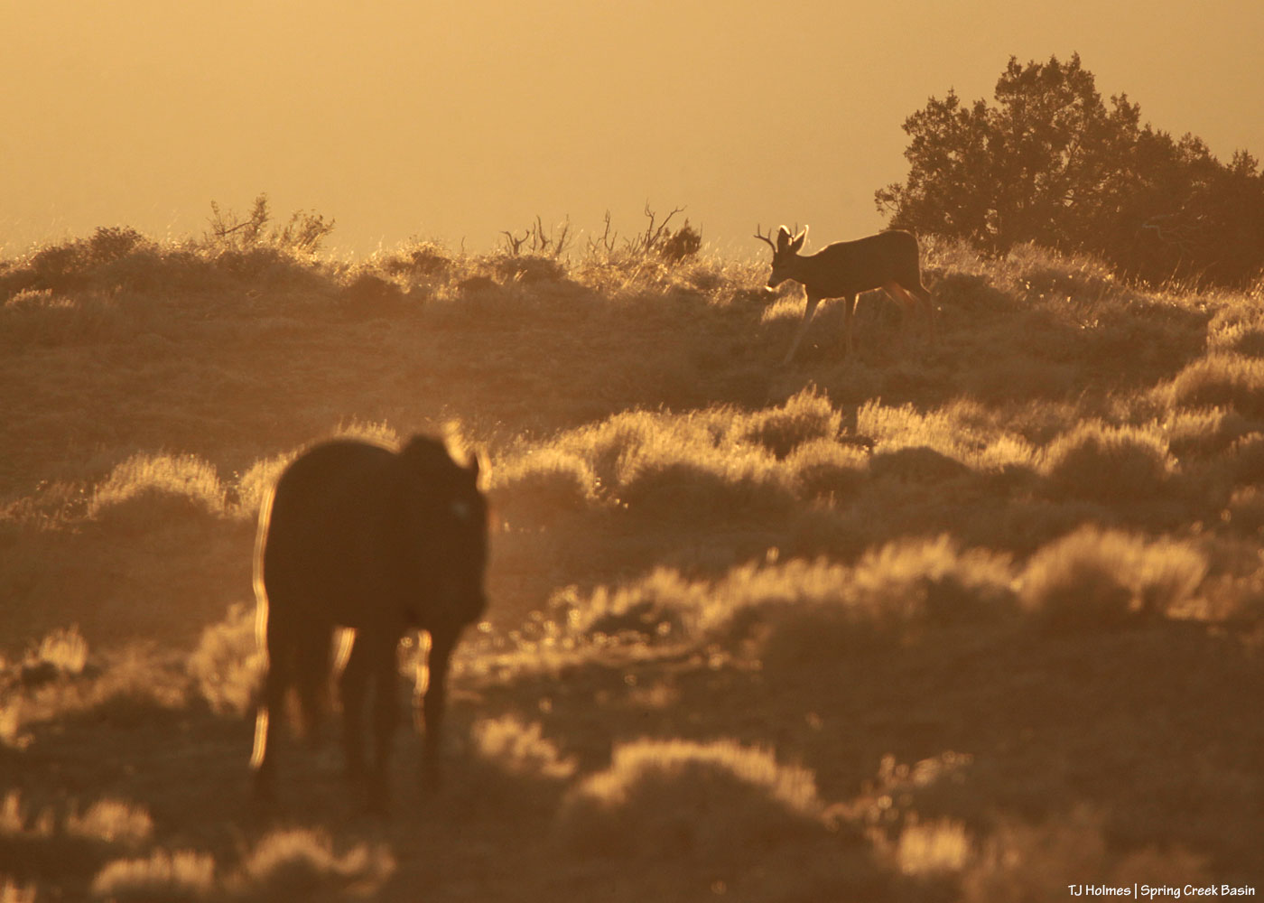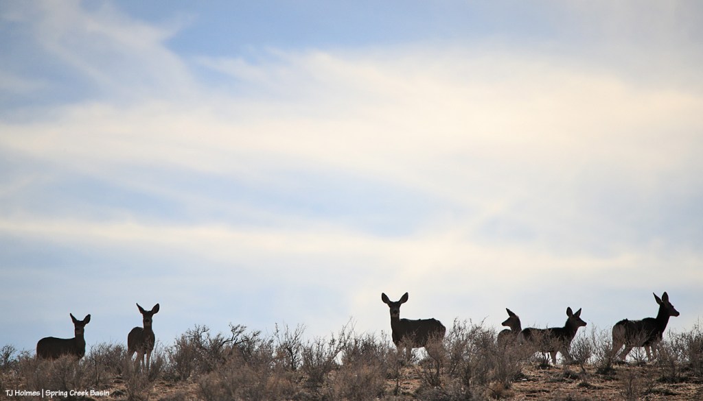Sunrise in Disappointment Valley highlighting mule deer (I’m so glad to see the bucks back!) in the greasewood and chamisa (rabbitbrush) and willows and cottonwoods along Disappointment Creek, looking toward Spring Creek Basin. It was a drive-by shot, and I couldn’t actually see what I was shooting on my phone’s screen, but the light was so beautiful highlighting the pretty and handsome does and bucks, I literally pointed and pressed the button.
