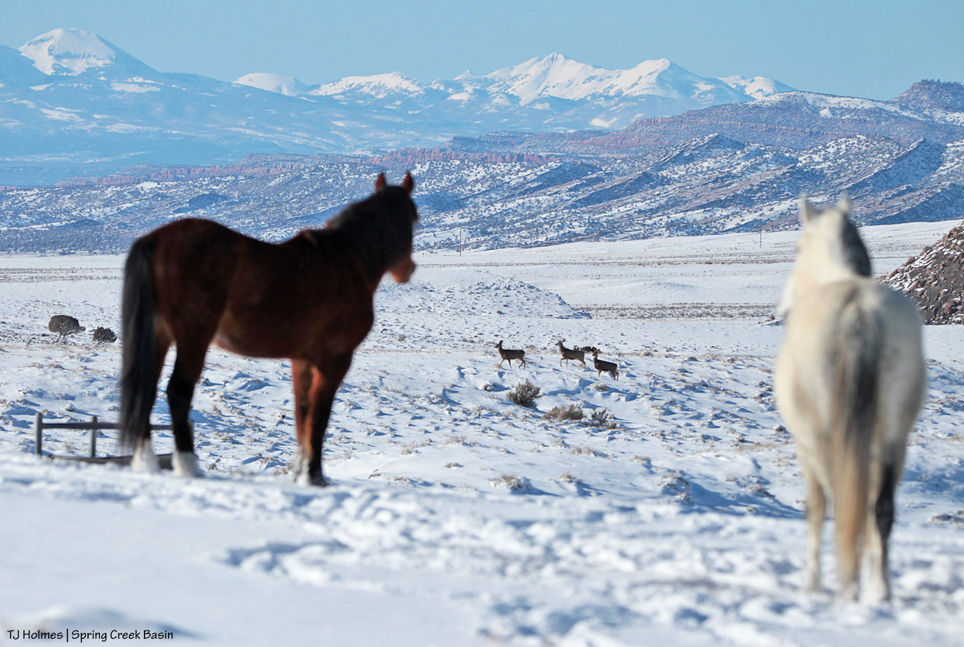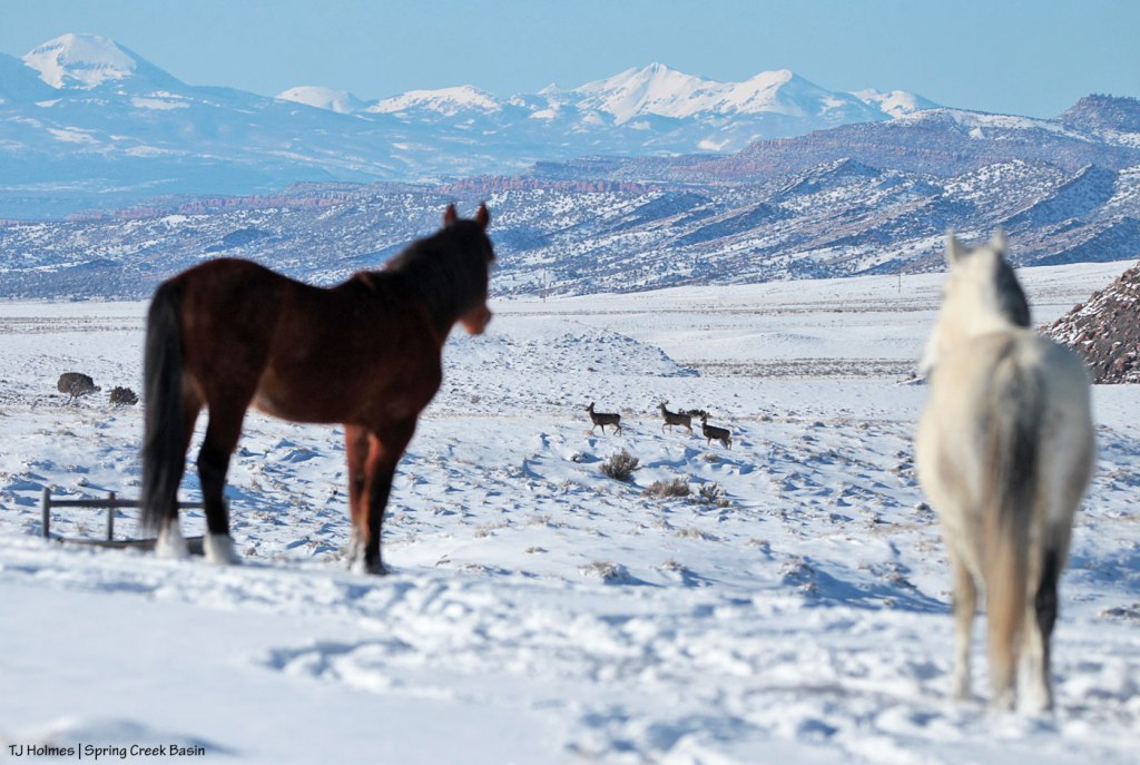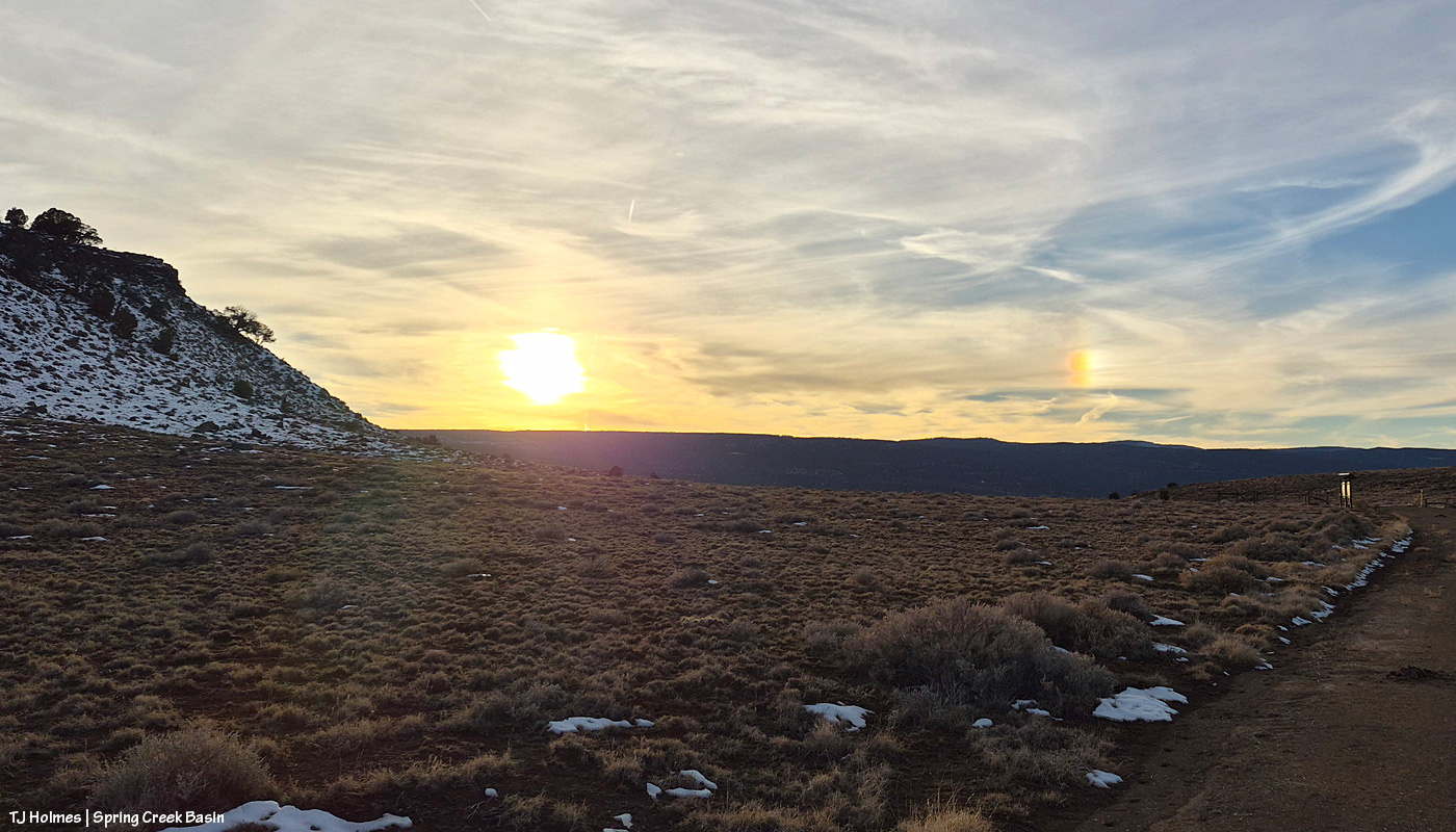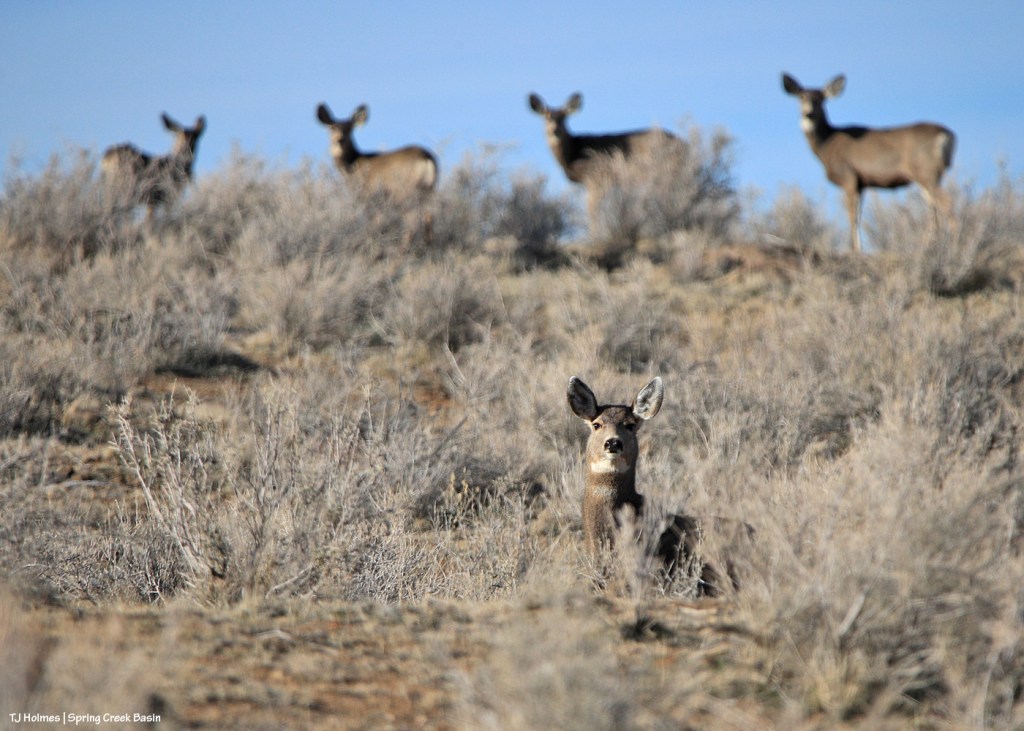 Sunrise in Disappointment Valley highlighting mule deer (I’m so glad to see the bucks back!) in the greasewood and chamisa (rabbitbrush) and willows and cottonwoods along Disappointment Creek, looking toward Spring Creek Basin. It was a drive-by shot, and I couldn’t actually see what I was shooting on my phone’s screen, but the light was so beautiful highlighting the pretty and handsome does and bucks, I literally pointed and pressed the button.