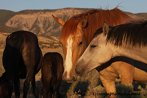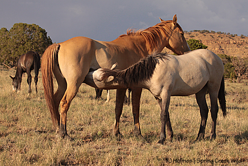 Sundance, baby’s stepdaddy, snoozing with the band. Kreacher is the colt’s sire; he lost the band to Sundance just before the roundup last fall. Apollo is baby’s full brother, and Mysterium is his half-sister.