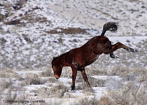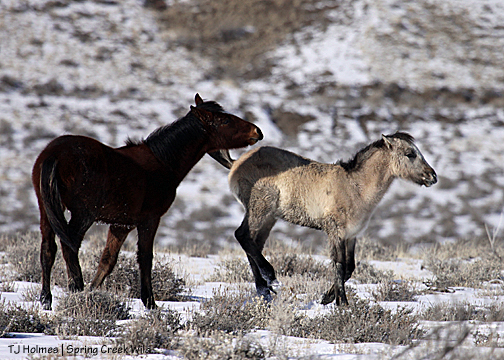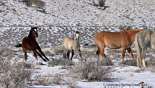 … there she is – Shadow – trotting off toward Mona while Aspen and Seven have a disagreement in the background. And what interest a mare when there’s boy-play to engage in? Storm breaks off from his pursuit of Shadow to harass Seven and Aspen.