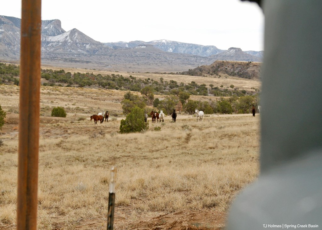 Monday, Tif Rodriguez, long-time advocate for Spring Creek Basin mustangs as well as for protecting rights and rights-of-way for horsemen and horse (and other pack stock such as mules) use on public lands, and I went to Tres Rios Field Office, where Joe Manning, assistant field office manager (who also has a lot to do with our confidence-inspiring herd management), had scheduled us into a rare gap in Connie’s last-week schedule. Daniel Chavez, range tech who works with Mike (and Garth Nelson), joined us in Mike’s absence (he was returning from a trip with his daughter).