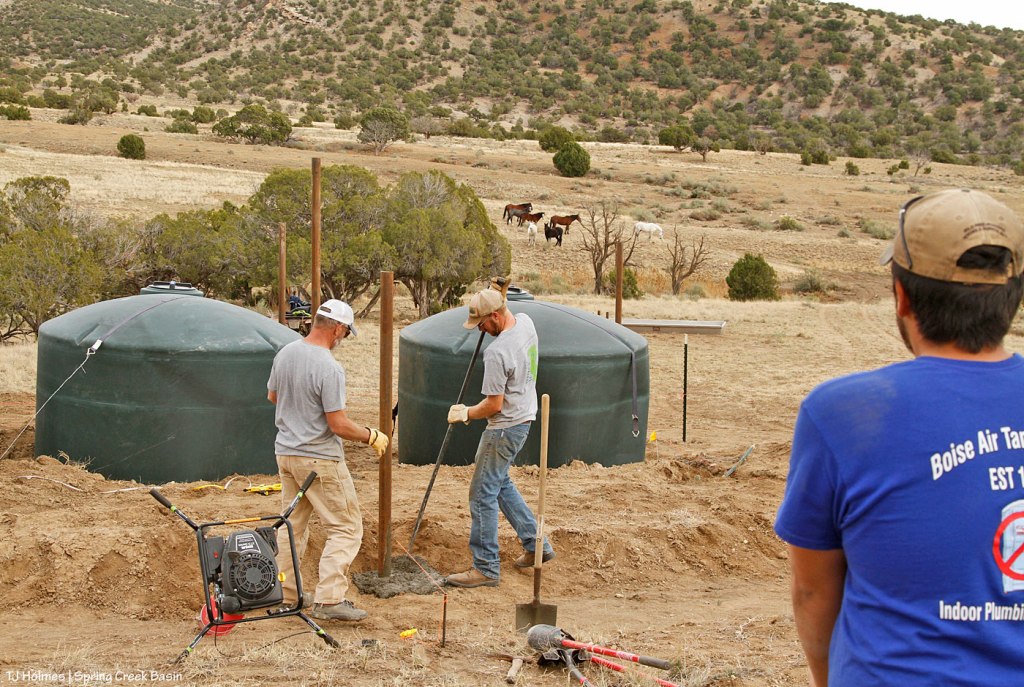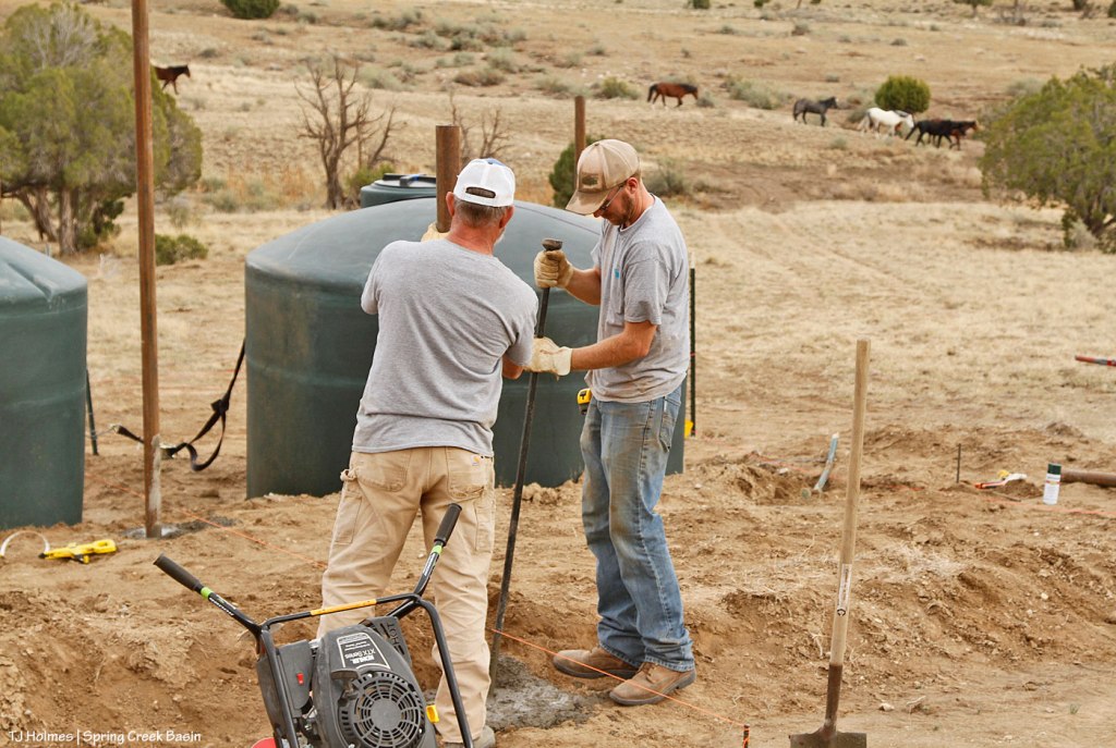 Well, we outlasted the summer heat, the gnats, the dust, the wind, the dust, the gnats, the heat, the dust (you get the picture), and it’s time to finish our second new water-catchment project for our mustangs of Spring Creek Basin!