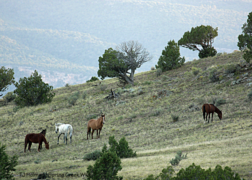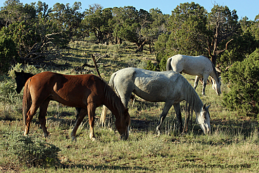 Kiowa finally saw us – Maiku took advantage of her pause to grab a snack. Copper in the foreground, Chipeta behind Kiowa and Spook at right.