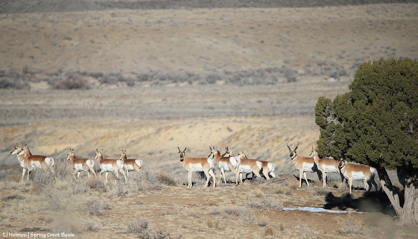 The above pic with the pronghorns, in the western part of the basin looking northeastish, illustrates it fairly well. Usually if anywhere gets snow, it’s that eastern side of higher-elevation ridges, not NOT that side AND the lower/interior/western part of the basin.