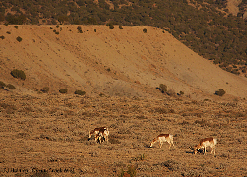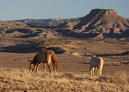 The lay of the land made the west side of Filly Peak a good place for a trapsite, but when I found out the helicopter would be bringing horses in around the “back side,” I was concerned. The “flats” and the area between Filly Peak and corral hill are some of the most broken and cut by arroyos in the whole basin, though it’s very deceptive to look at. So I set off with two BLM guys – two of the best men I’ve ever met – and we hiked around to check the horses’ trails and tracks they’d likely follow to get from yonder to the trap. On our way back, here came Jif, Hayden, Two Boots, Rio and Boreas, galloping around toward us. They passed us, but stopped, then, while we waited to see what they’d do – where they’d go – they turned around and galloped back around (toward the trap and where they’d come from – where they’d “lost” Chrome), kicking up their heels as they went.
