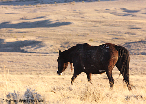 Back to “Kreacher’s band,” they were not targeted during the roundup (thank you again to the pilot), and so I never saw them during those days … or the day after when I went back into the basin to look for horses. Chrome’s did, of course, come in. Jif deserves her own post at some point … Two Boots was adopted by a very nice lady; Boreas went to a nice couple very close to Disappointment Valley; Rio is getting ace marks from his adopters – eating from her hand and being led by a break-away string around his neck.