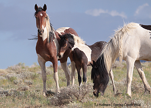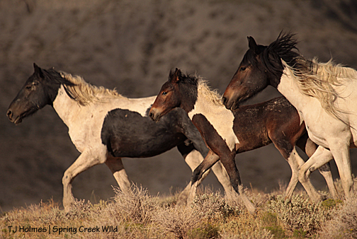Baby catching up to mama, walking past Chipeta and Uncle Half-brother Maiku (Reya’s little brother by their mother, Kiowa, and baby’s brother by their sire, Copper).