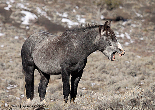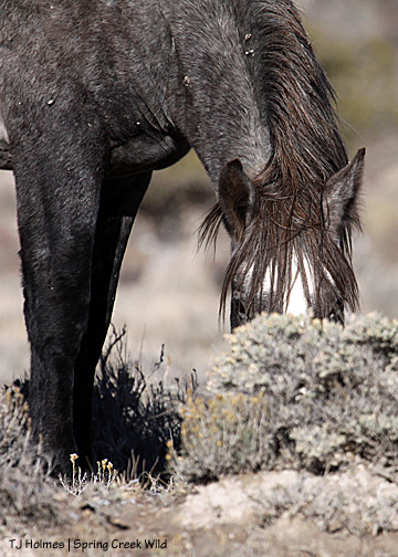 One very interesting thing that I couldn’t capture with the camera because they were never close enough while I was there: the obvious size difference between Storm (3 in late July) and David (probably 8-10ish or older). This was easier seen Wednesday (when I didn’t have a camera – crazy, I know) – even from a distance, it was apparent. Storm looks compact, and David looks long and lean. Both are true, but Storm is noticeably bigger – taller, wider, stouter. An advantage of PZP-22 (it worked on Alpha alone of the mares it was administered to in 2007) and/or good genetics/nutrition/better forage from removal of some horses and less pressure on the basin? Never know. 🙂