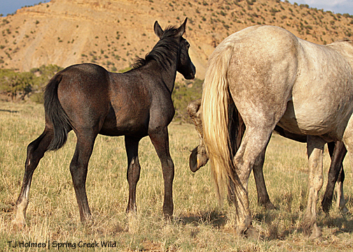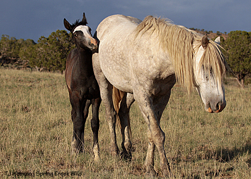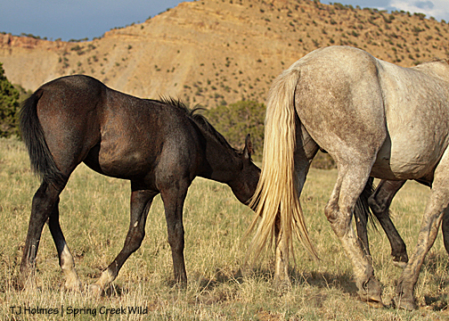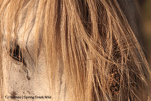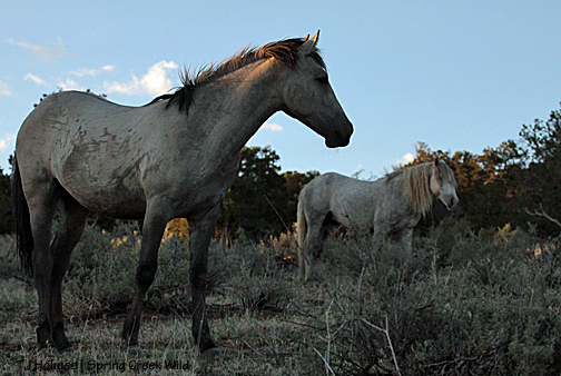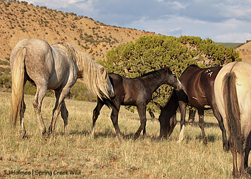 Raven, Skywalker and Sundance watched Hollywood’s and Comanche’s bands below them on the hill for a while, then followed me to where Koootenai and Mysterium were grazing by themselves. Kootenai is fairly independent and often can be found grazing somewhat separate from the others. They’re never too far away, and young Sundance is a calm and confident stallion to let them wander.