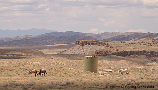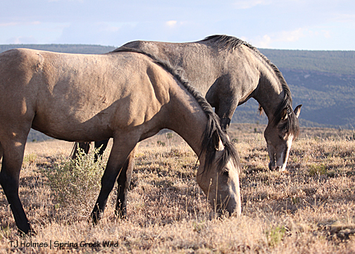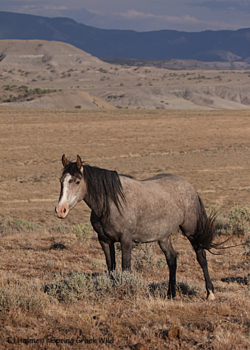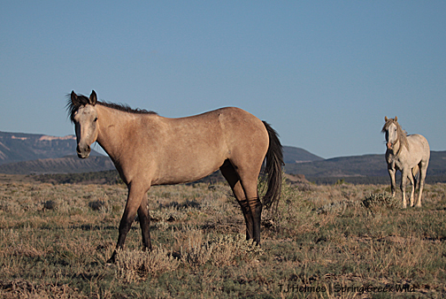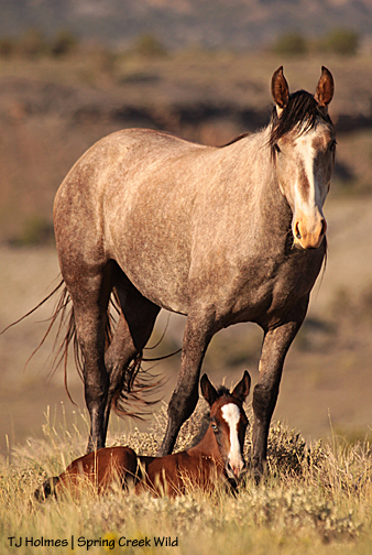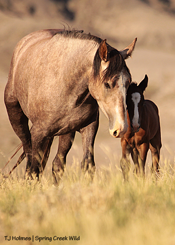Daddy Chrome. The timing of baby’s birth fits. She must have conceived immediately after Chrome acquired her and Winona after the roundup last year. (That’s one of the basin’s boundary fences in the background.)