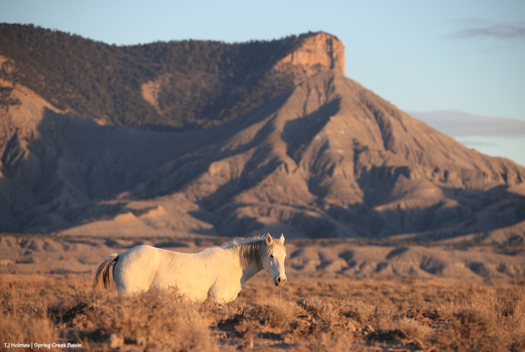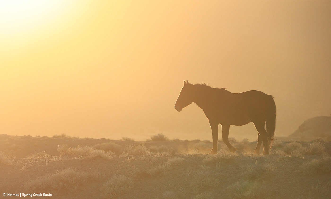 Going back almost exactly a month for this one from a gorgeous, peaceful evening in Spring Creek Basin. The mercury is edging up into the 50s, making it seem more like spring (or fall? leap ahead or remember the days of “yore”?) than winter. So for this morning, an evening pic that recalls soft, warm light and a trip to water for the ponies.